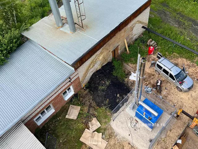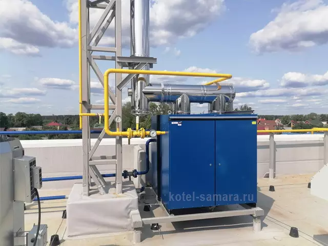 Котел наружной установки 100 кВт сдвоенный., крышное размещение. Степень огнестойкости III, медицинский центр "Гарантия", г. Бор Нижегородской области.