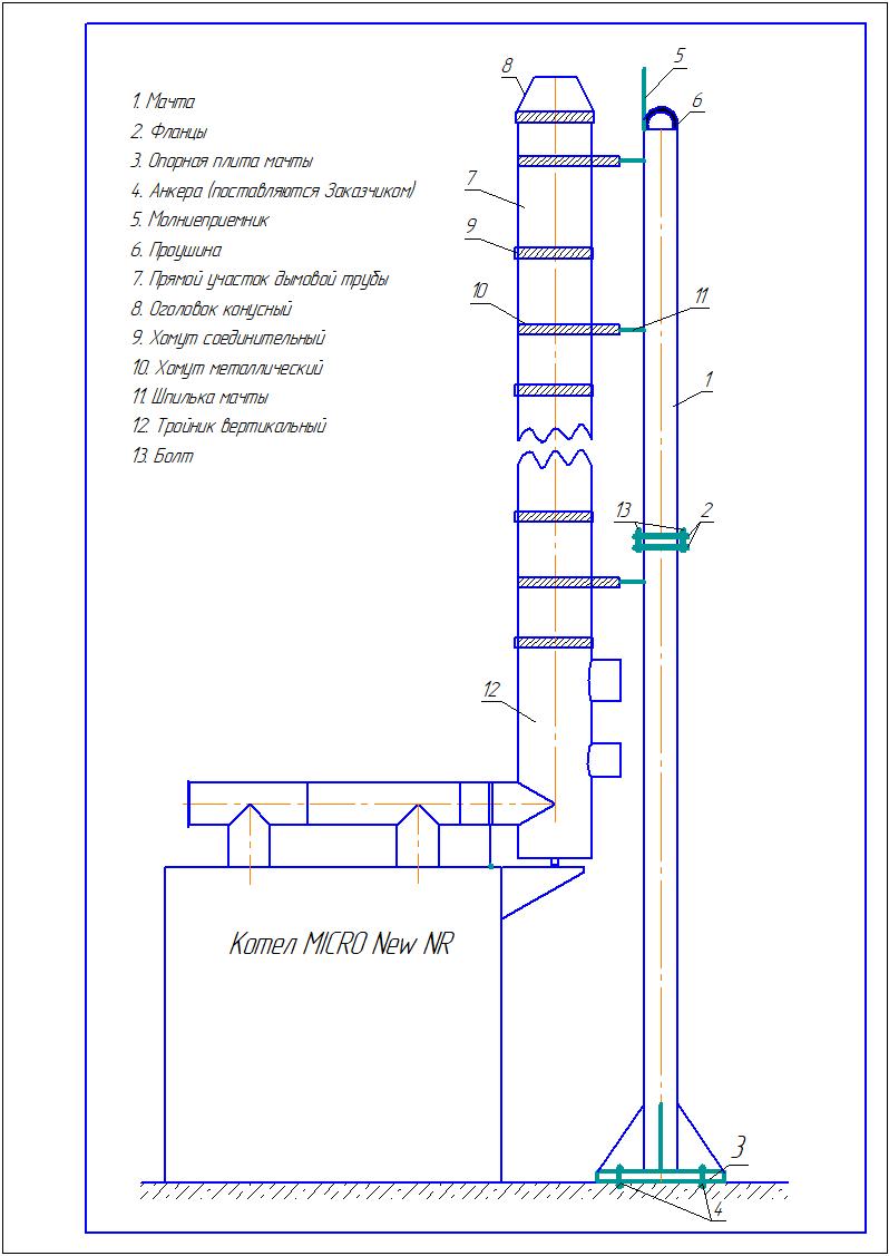 5. Дымовые трубы на котлы наружного размещения на мачте и основании. Схемы.