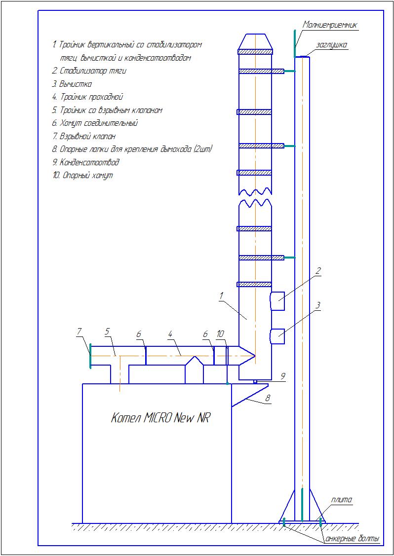 10. Инструкция по сборке дымовой трубы по стене здания КНР MICRO New NR