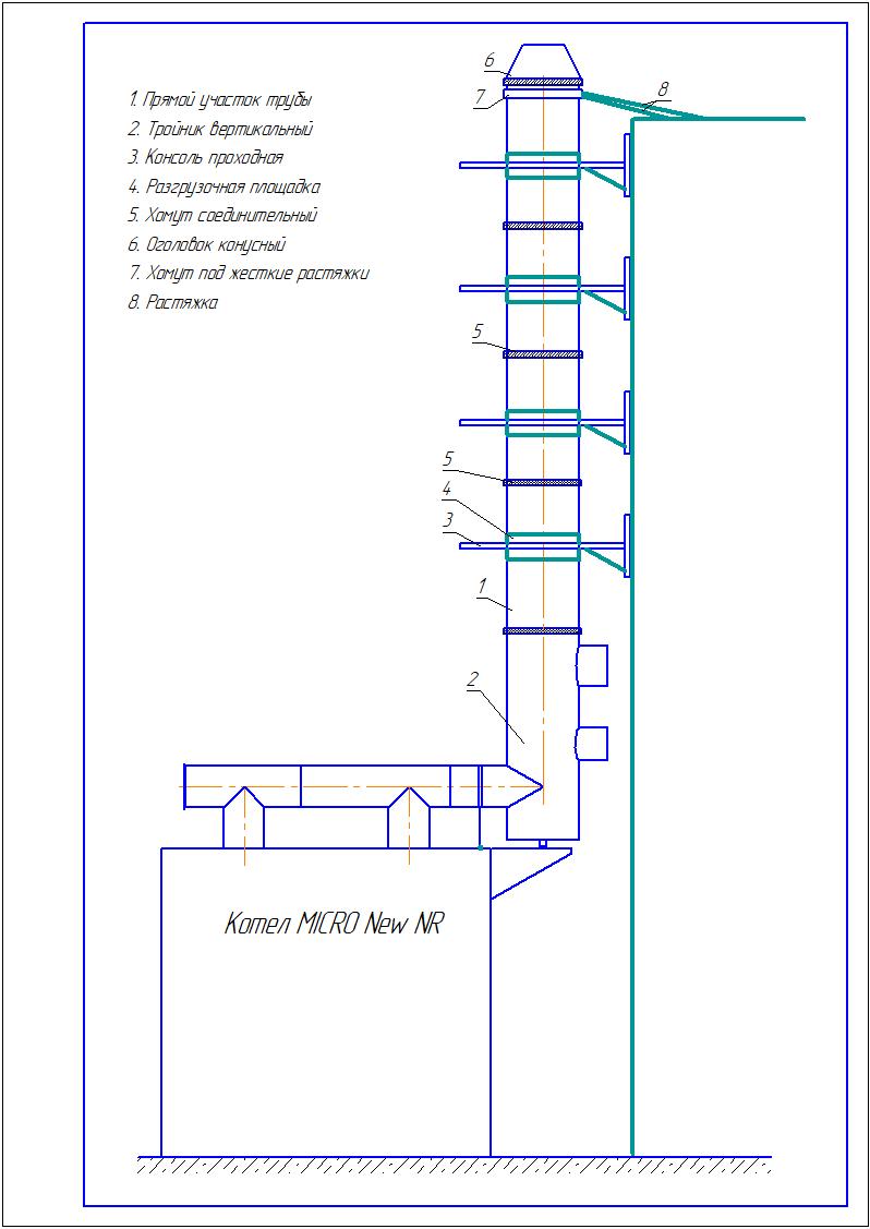 11. Схема к инструкции по сборке дымовой трубы по стене здания КНР MICRO New NR