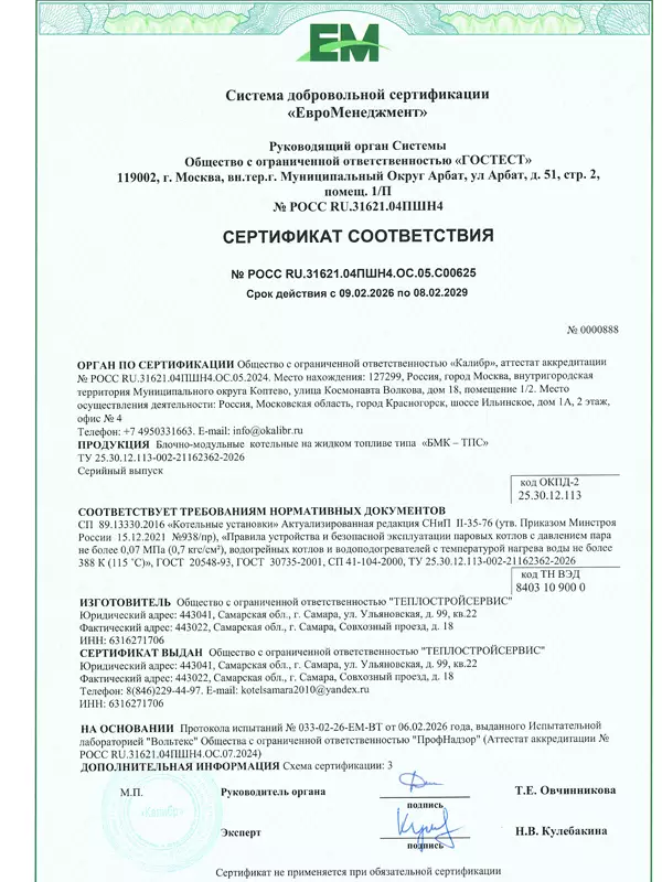 Сертификат на установки котельные транспортабельные УКТ-КТС ООО "КОТЛОСТРОЙСЕРВИС""