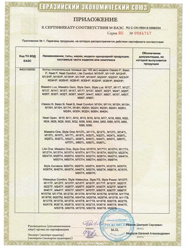Сертификаты на котлы газовые MICRO New? котлы наружного размещения MICRO New NR, БМК.
